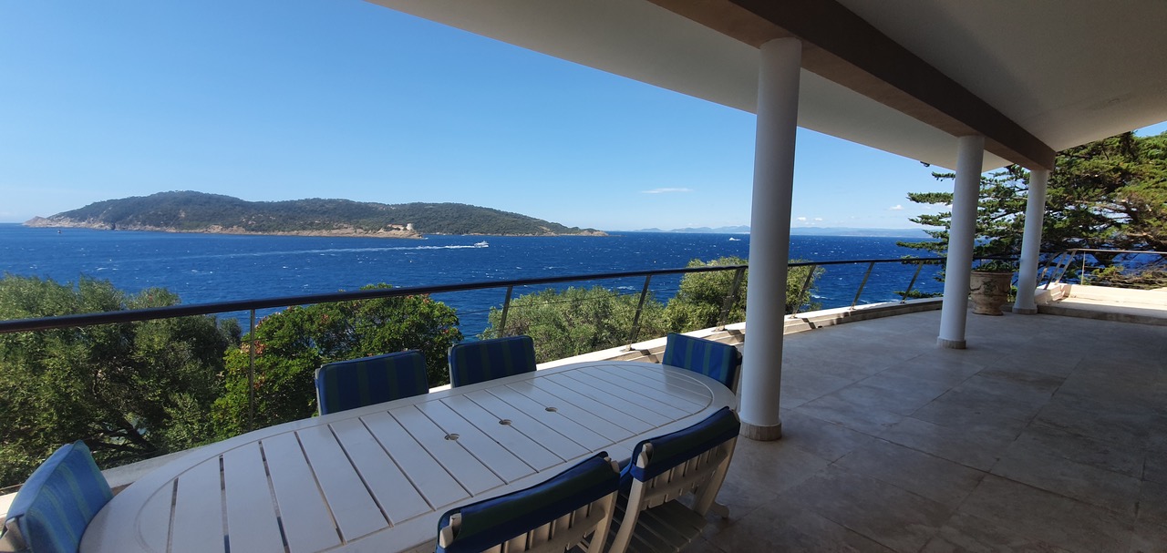 Ein außergewöhnliches Anwesen, das inmitten einer einzigartigen Naturkulisse auf der Île du Levant liegt und einen freien, atemberaubenden 180-Grad-Blick über das Mittelmeer eröffnet. Die moderne zweigeschossige Villa befindet sich direkt an der Küste, gegenüber dem Naturpark Port Cros - ein Ort, der für absolute Ruhe, Exklusivität und geschützte Landschaft steht.